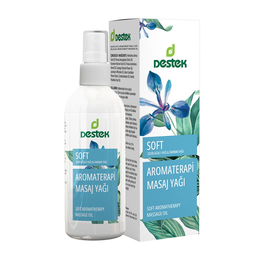Destek Aromaterapi Soft Masaj Yağı, ferah ve hoş kokulu bitki yağlarından oluşan, aromaterapi amaçlı kullanılabilen doğal bir masaj yağıdır.